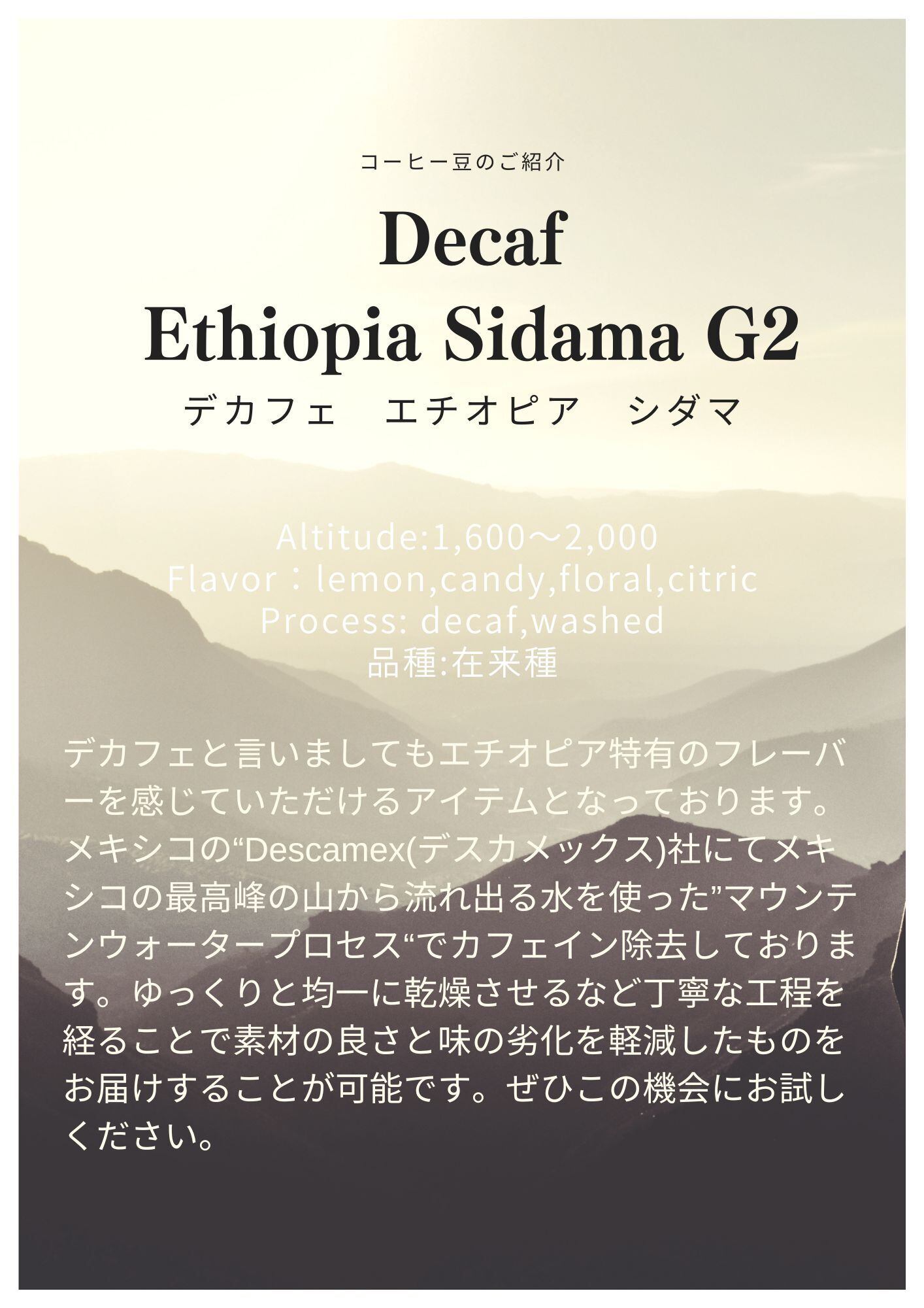 名称:DECAF Ethiopia Sidamo G2