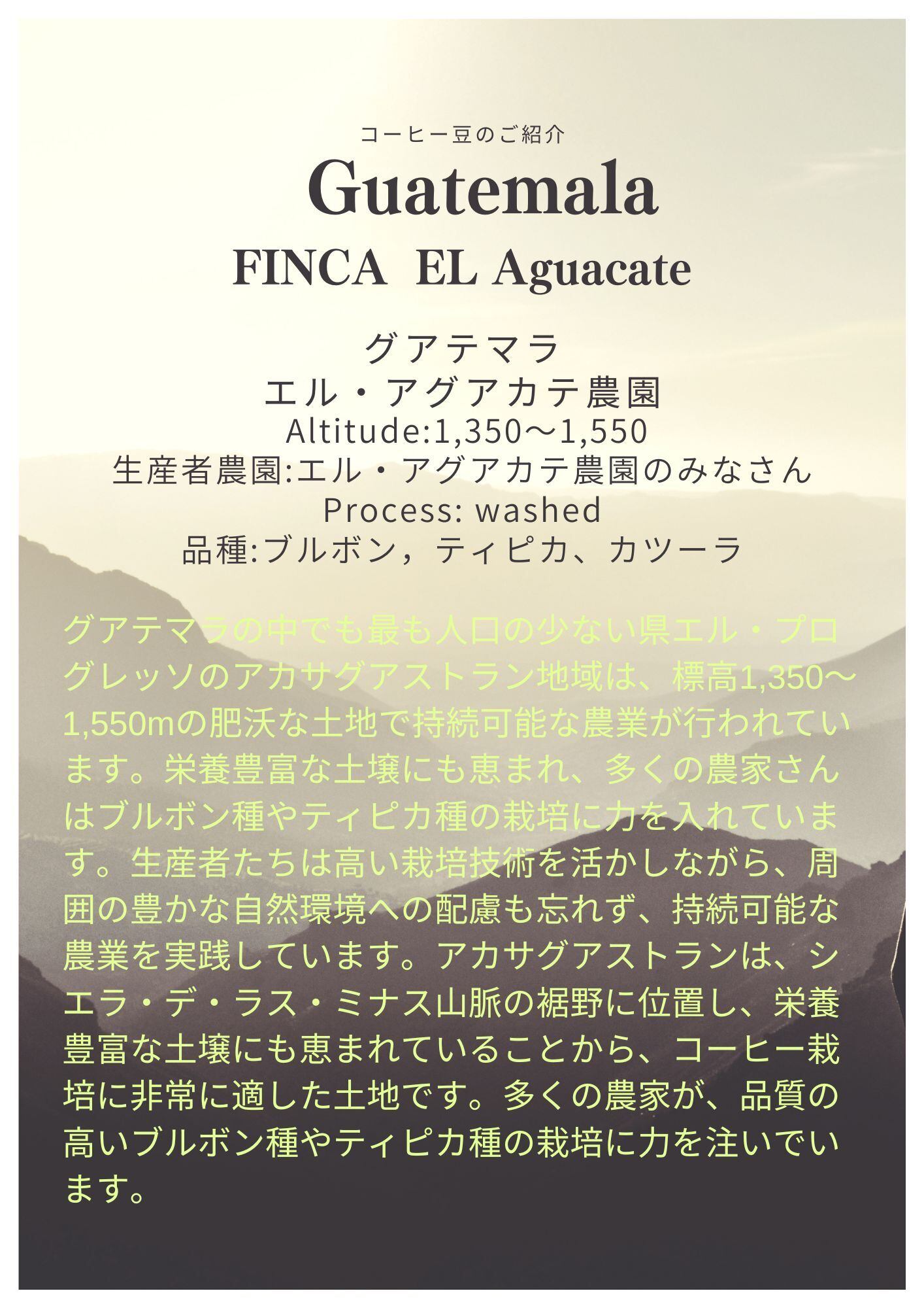 グアテマラの中でも最も人口の少ない県エル・プログレッソのアカサグアストラン地域は、標高1,350〜1,550mの肥沃な土地で持続可能な農業が行われています。栄養豊富な土壌にも恵まれ、多くの農家さんはブルボン種やティピカ種の栽培に力を入れています。